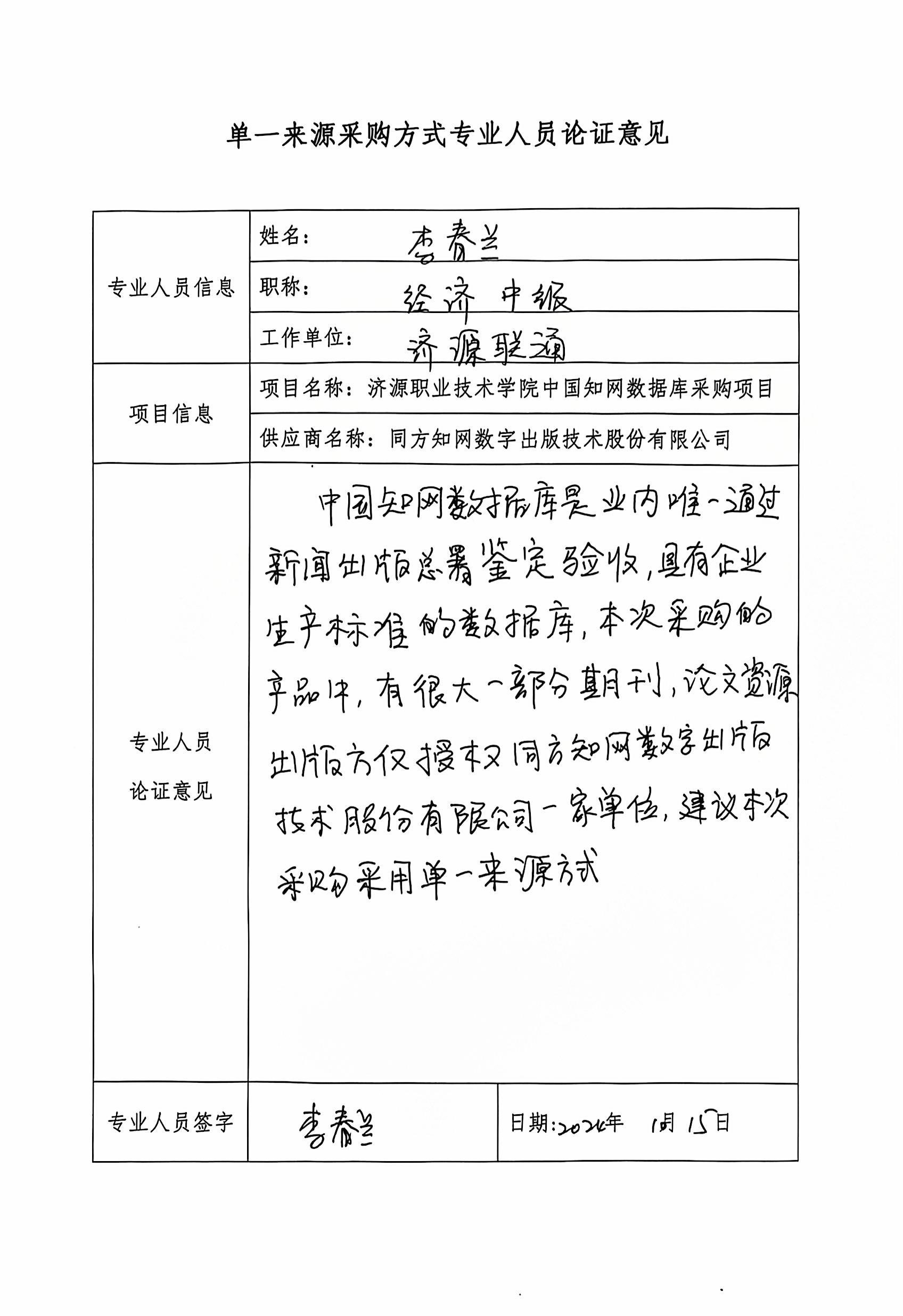 河南国之泰工程管理有限公司受济源职业技术学院的委托,就济源职业技术学院中国知网数据库采购项目拟采取单一来源方式采购,公示内容如下: 一、项目名称: 济源职业技术学院中国知网数据库采购项目 二、简要说明: 中国知网数据库采购; 采购预算:150000元 三、原供应商名称: 供应商名称:同方知网数字出版技术股份有限公司 地址:北京市海淀区西小口路66号中关村东升科技园B-2号楼二层B201-B203、B205-B210室(东升地区) 四、采用单一来源采购方式的原因: (1)正规版权:中国知网数据库是业内唯一通过新闻出版总署鉴定验收,唯一具有企业生产标准的数据库。中国标准刊号: CN 11-9101/N ,国际统一刊号:ISSN1007-8010。 (2)优先出版:中国知网数据库数据资源更新及时、快捷,国内唯一实现了部分电子期刊优先纸质期刊1-3个月出版。 (3)我校长期使用中国知网的数据库服务,使用效果良好,为了更好的建设馆藏资源,保持资源使用的连续性和一致性,继续采购中国知网数据库很有必要。 (4)本次采购的产品中,有很大一部分期刊、博硕论文等资源,出版方仅把网络出版授权给了同方知网数字出版技术股份有限公司一家单位,只能从该厂家获得。 因此,本次采购的数字资源中,存在只能从唯一生产商获取的情况。 综上,根据《中华人民共和国采购法》第三十一条规定,适用采取单一来源方式采购。 五、公示期 1、公示期限自2024年10月16日至2024年10月22日(法定公休日、法定节假日除外); 2、潜在政府采购供应商对公示内容有异议的,请在公告发布之日起5个工作日内,以实名书面(包括联系人、地址、联系电话)形式将意见反馈至财政局政府采购监督监管处和采购人或采购代理机构,并由法定代表人或其授权代表携带本人身份证明(原件)一并递交(邮寄、传真件不予受理)。 六、联系方式 采购人名称:济源职业技术学院 采购人地址:济源市济源大道中段88号 联 系 人:侯君君 联系电话:0391-6621033 2.采购代理机构信息 代理机构名称:河南国之泰工程管理有限公司 代理机构地址:济源市凯旋城东区C2-222室 联 系 人:曹萌萌 联系电话:0391-6623030 3.项目联系方式 联 系 人:曹萌萌 联系电话:0391-6623030 河南国之泰工程管理有限公司 2024年10月15日