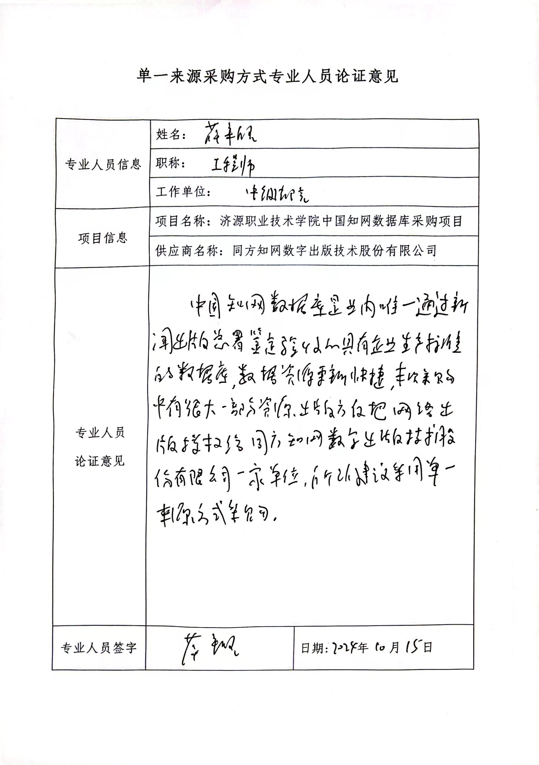 河南国之泰工程管理有限公司受济源职业技术学院的委托,就济源职业技术学院中国知网数据库采购项目拟采取单一来源方式采购,公示内容如下: 一、项目名称: 济源职业技术学院中国知网数据库采购项目 二、简要说明: 中国知网数据库采购; 采购预算:150000元 三、原供应商名称: 供应商名称:同方知网数字出版技术股份有限公司 地址:北京市海淀区西小口路66号中关村东升科技园B-2号楼二层B201-B203、B205-B210室(东升地区) 四、采用单一来源采购方式的原因: (1)正规版权:中国知网数据库是业内唯一通过新闻出版总署鉴定验收,唯一具有企业生产标准的数据库。中国标准刊号: CN 11-9101/N ,国际统一刊号:ISSN1007-8010。 (2)优先出版:中国知网数据库数据资源更新及时、快捷,国内唯一实现了部分电子期刊优先纸质期刊1-3个月出版。 (3)我校长期使用中国知网的数据库服务,使用效果良好,为了更好的建设馆藏资源,保持资源使用的连续性和一致性,继续采购中国知网数据库很有必要。 (4)本次采购的产品中,有很大一部分期刊、博硕论文等资源,出版方仅把网络出版授权给了同方知网数字出版技术股份有限公司一家单位,只能从该厂家获得。 因此,本次采购的数字资源中,存在只能从唯一生产商获取的情况。 综上,根据《中华人民共和国采购法》第三十一条规定,适用采取单一来源方式采购。 五、公示期 1、公示期限自2024年10月16日至2024年10月22日(法定公休日、法定节假日除外); 2、潜在政府采购供应商对公示内容有异议的,请在公告发布之日起5个工作日内,以实名书面(包括联系人、地址、联系电话)形式将意见反馈至财政局政府采购监督监管处和采购人或采购代理机构,并由法定代表人或其授权代表携带本人身份证明(原件)一并递交(邮寄、传真件不予受理)。 六、联系方式 采购人名称:济源职业技术学院 采购人地址:济源市济源大道中段88号 联 系 人:侯君君 联系电话:0391-6621033 2.采购代理机构信息 代理机构名称:河南国之泰工程管理有限公司 代理机构地址:济源市凯旋城东区C2-222室 联 系 人:曹萌萌 联系电话:0391-6623030 3.项目联系方式 联 系 人:曹萌萌 联系电话:0391-6623030 河南国之泰工程管理有限公司 2024年10月15日